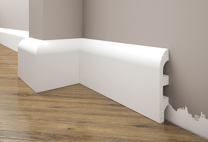 High density White PVC Skirting. Excellent finish and durability. Available in satin finish or matt paintable finish.