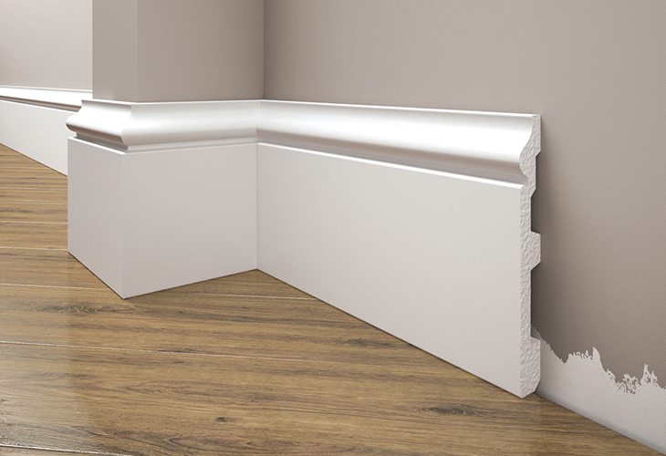High density White PVC Skirting. Excellent finish and durability. Available in satin finish or matt paintable finish.